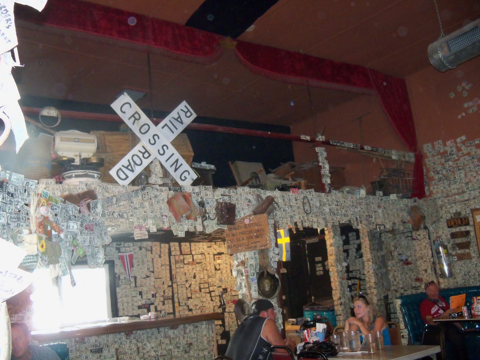 we had lunch in oatman at this restaurant that had dollar bills EVERYWHERE!!! they were on the ceiling and they were all over the walls! you signed your dollar bill and would hang it on the wall! it was so cool! but the service was HORRIBLE! but that is ok it was so fun!