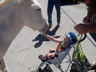 We also went to this old mining town call oatman and it is in the middle of BFE but it is a cool little town they have burrows running around the town free and they will come right up to you and everything! we have a bunch of pictures of them with jamison they loved him! probably cuz he smelled like food! lol they even tried to eat jamisons cowboy hat! lol